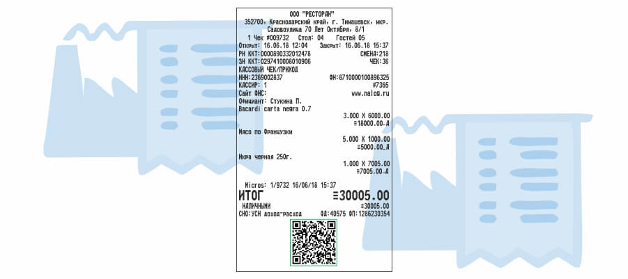 Наши ресторанные чеки Гурьевск указанные в примерах, проходят проверку в приложении ФНС